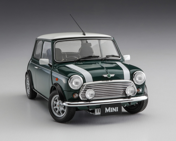 Hasegawa's latest model kit of the Mini Cooper 1.3i is a completely new mold, based on extensive research conducted on the real thing! The Mini (Classic Mini) first appeared in 1959, and was manufactured without a model change until 2000. This is a front-wheel drive vehicle with a compact body and maximum interior space; it's especially popular in Japan, and has been loved for generations. This kit reproduces the Mini Cooper from 1997, the final model of the classic Mini (commonly known as MK.X) produced from 1997 to 2000. Special care has been taken to accurately reproduce the suspension and the characteristic body structure; assembling this kit will give you the seem feeling as restoring the actual car! Metal inlets are included for the dashboard meter frames, as are window stickers; some parts (front grille, front and rear bumpers, headlight and taillight mirror surfaces, emblem, fuel filler cover, muffler, doorknobs, etc.) are plated as well. Bonus parts are included for the center meter-type dashboard, wood steering wheel, fender mirror (plated), and a European license plate, too. Order yours today!